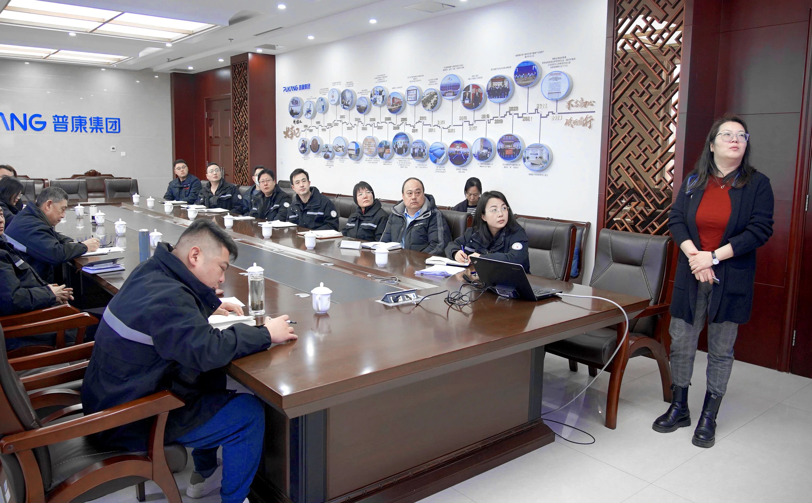 普康医疗总经理柏乾、营销调控中心总经理柏佳莉、各部门负责人等出席会议。